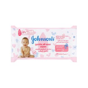 JOHNSON'S- GENTLE ALL OVER WIPES, FOR SILKY SMOOTH SKIN 20 WIPES/ جونسون- مناديل لتنظيف لطيف لكامل البشرة, غنية بخلاصة الحرير لبشرة ناعمة مثل الحرير 20 منديل