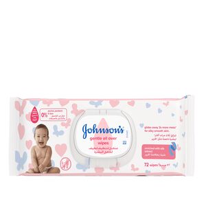 JOHNSON'S- GENTLE ALL OVER WIPES, FOR SILKY SMOOTH SKIN 72 WIPES/ جونسون- مناديل لتنظيف لطيف لكامل البشرة, غنية بخلاصة الحرير لبشرة ناعمة مثل الحرير 72 منديل