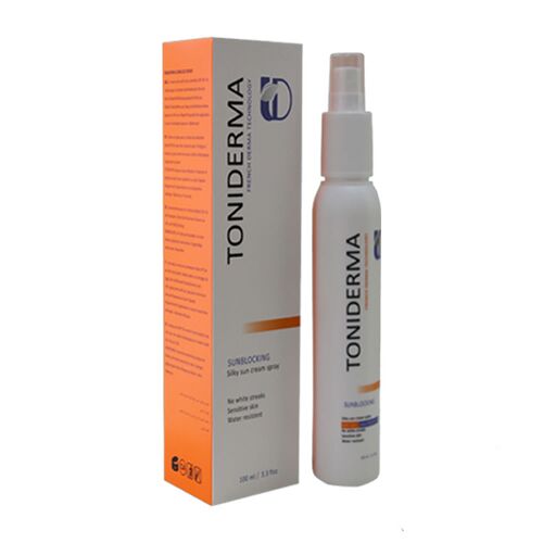 TONIDERMA SUNBLOCKING SILKY SUN CREAM SPRAY, WATER RESISTANT, EVEN FOR SENSITIVE SKIN 100ml / تونيديرما واقي شمس بخاخ فائق الحماية للوجه و الجسم, مقاوم للماء, حتى للبشرة الحساسة 100مل